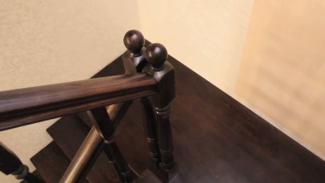 Роскошная лестница на косоурах с поворотной площадкой на 180 градусов.