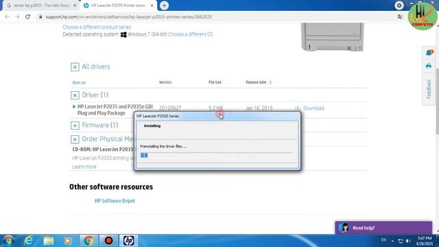 Hướng dẫn cài đặt driver máy in hp laserjet p2035 cho windows 7 64bit