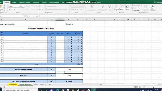 Расчет стоимости