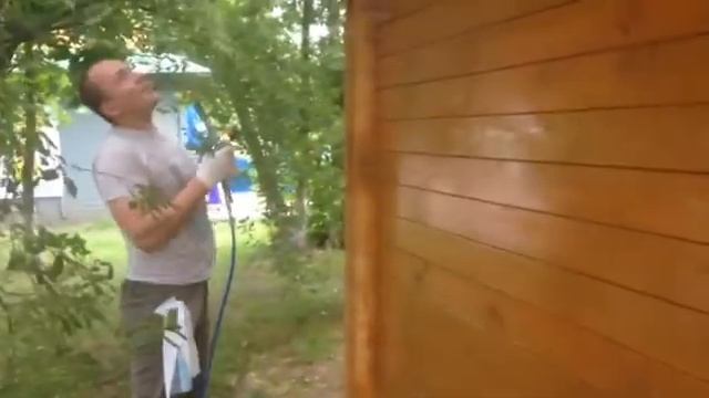 Покраска стен деревянного дома безвоздушным способом