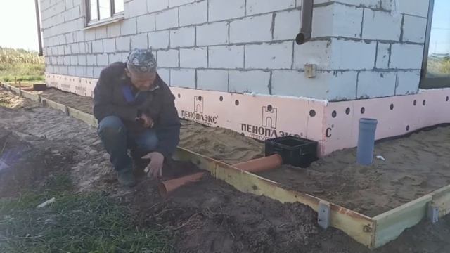 УКЛАДЫВАЕМ ПЕСОК В ОТМОСТКУ/ТРАМБУЕМ/ПРОЛИВАЕМ/НЕ ХВАТИЛО ПЕСКА