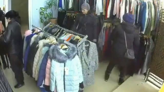Воровки в вещевом магазине воруют вещи
