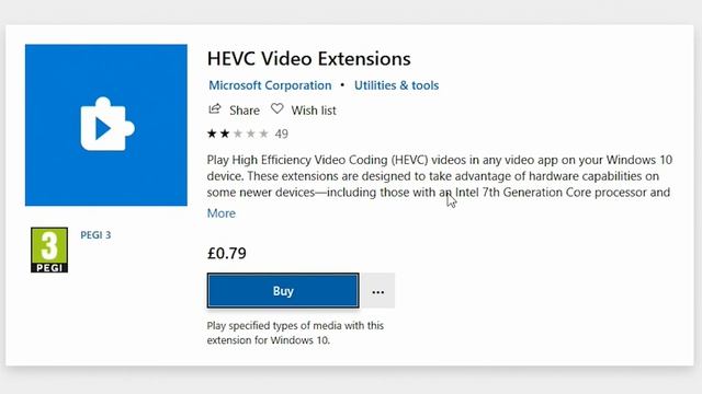 Get MicroSoft HEVC H265 CODEC For FREE From The Windows 10 Store