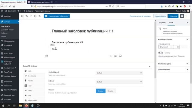 Как вставить ссылку в публикацию WordPress. Ссылка на публикацию. Транслитерация ссылок.