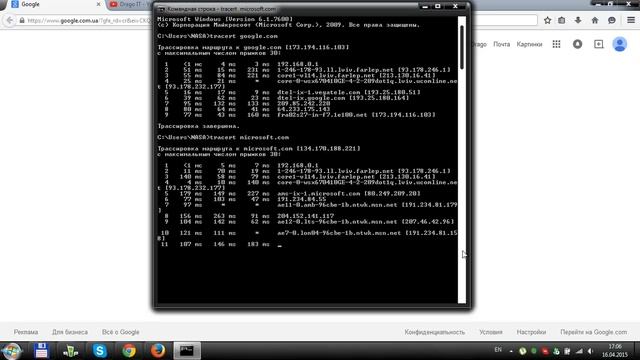 Команда tracert.