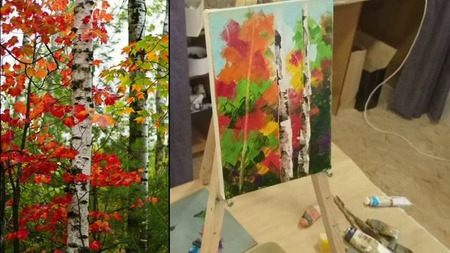 Осенний пейзаж мастихином. Мастер класс по живописи маслом