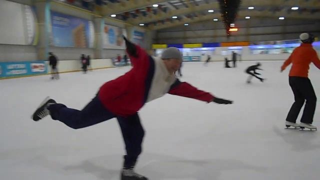 Толстый фигурист. Мужик (вес 100 кг) пробует сделать "ласточку"...