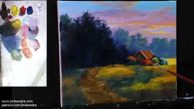Acrylic Landscape Painting Tutorial | House Beside the River