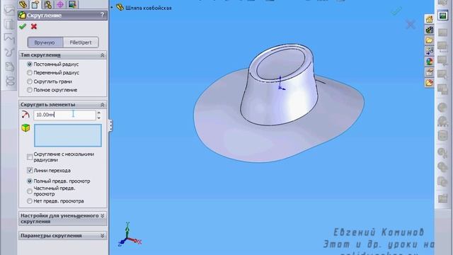Ковбойская шляпа в solidworks