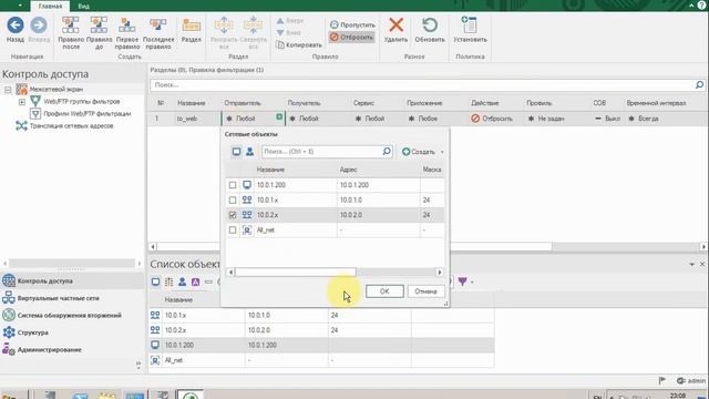Настройка правил фильтрации на узлах безопасности Континент 4