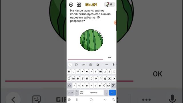 Brain out 91 level. На какое максимальное количество кусочков можно разрезать арбуз за 10 разрезов?
