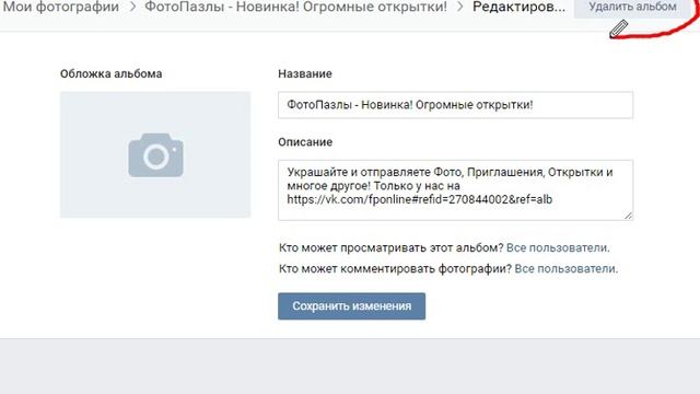 Как удалить альбом в обновленном вк