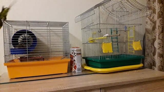 Прикольный хомяк Боня и любопытный попугай Яша .