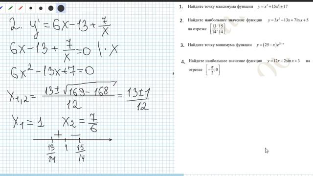 Разбор 12 задач из ЕГЭ ПРОФИЛЬ 2020 сборника Ященко, наибольшее и наименьшее значение функции