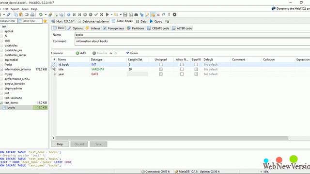 Tutorial HeidiSQL with MariaDB and MySQL Part 3 Creating tables and atributes