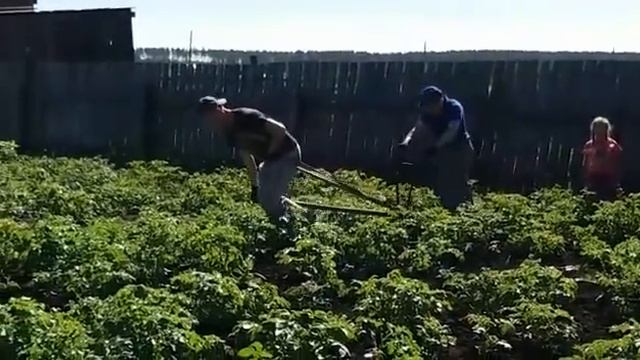 Тяговое усилие в одну человеческую силу.окучиваем картошку