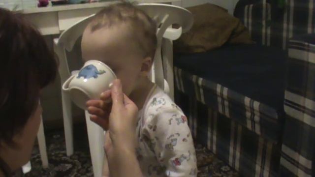 Дочка учиться пить из кружки
