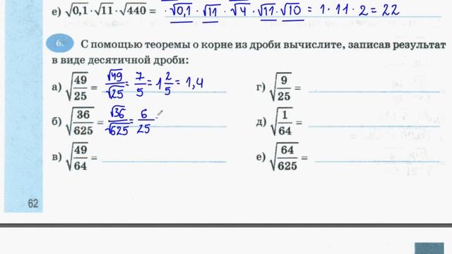 8 класс. Квадратный корень из произведения и дроби.