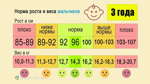 Нормы роста и веса МАЛЬЧИКОВ (0-18 лет)