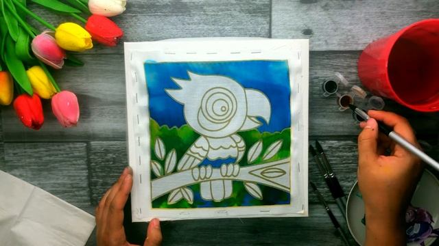 БАТИК • Роспись по шелку • Рисуем попугая