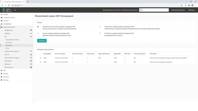 Traffic Inspector Next Generation: настройка NAT