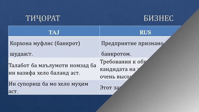 Омузиши забони руси: Бизнес - Тичорат. Русский Таджикский разговорник - словарь