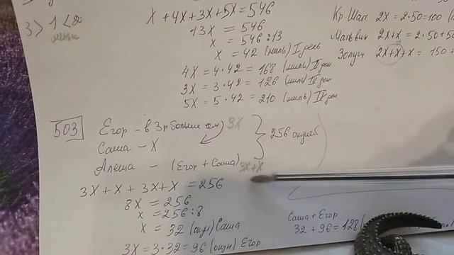 502, 503, 504 Математика 5 класс. Решаем задачи с помощью уравнения