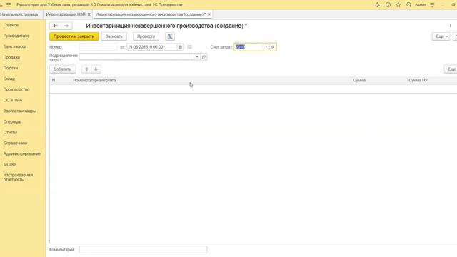8.3 Как создать документ "Инвентаризация незавершенного производства"