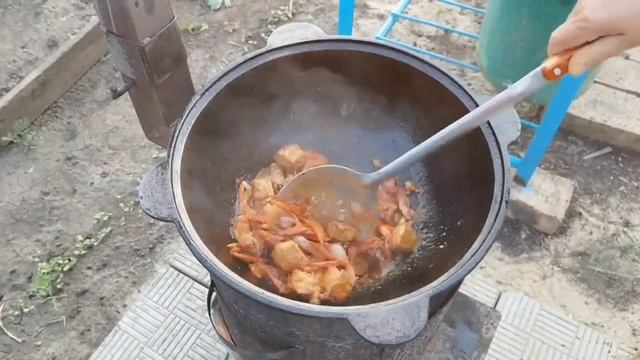 Плов в казане.Готовим на даче.