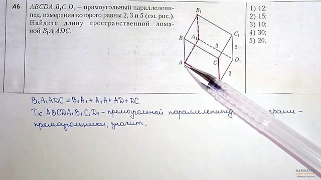 Прямоугольный параллелепипед. Длина пространственной ломаной. Задание В6 из ЦТ 2021 #цт2021