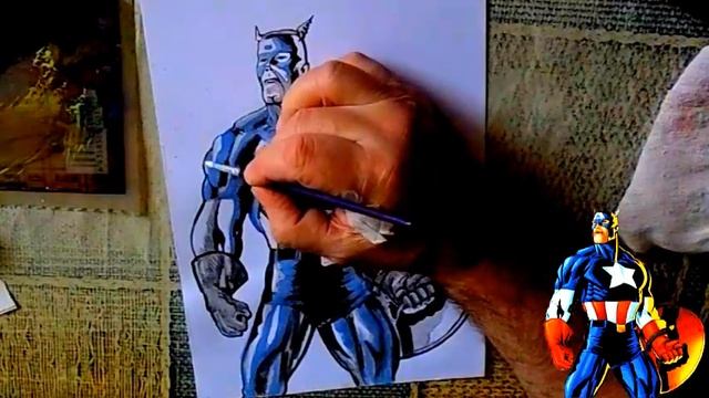 Как нарисовать супергероя. Рисуем капитана Америку гуашью