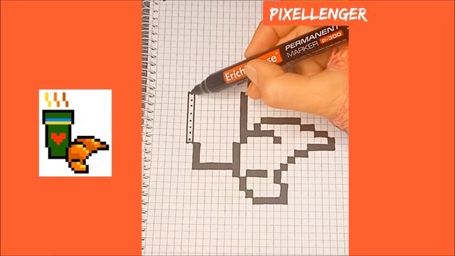 Как рисовать по клеткам Чашка Кофе Круассан Простые рисунки How to Draw Pixel Art Coffee Croissant