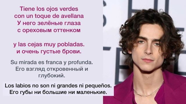 Как выглядит Тимоти Шаламе? Описание внешности на испанском.