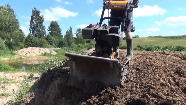 Гусеничным мотоблоком -засохшую глину