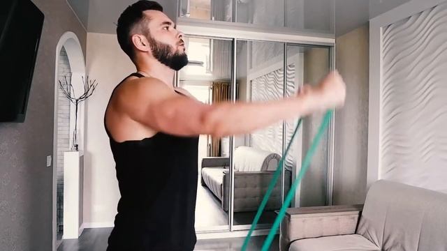 Как быстро прокачать плечи резиной, эспандером, фитнес резинкой.