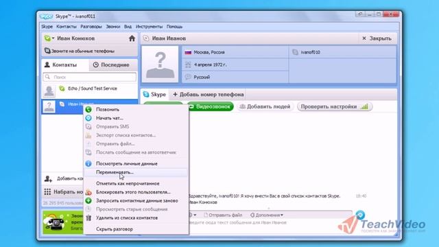 Поиск и добавление контактов в Skype