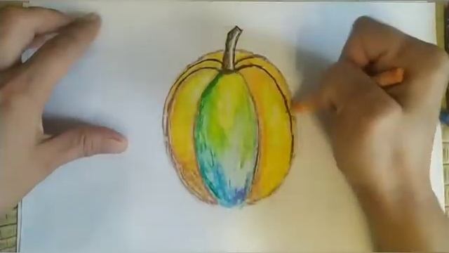 Рисунок с детьми. Тыква восковыми мелками. #творчествосдетьми #рисованиедляначинающих #рисование