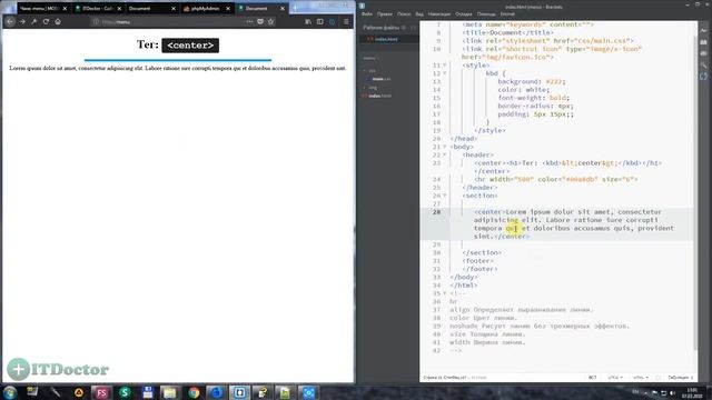 #37 Выравнивание текста по центру в html тег center