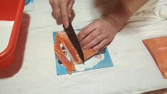 Нарезка красной рыбы на ломтики
