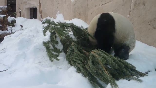 Панда убирает ёлку