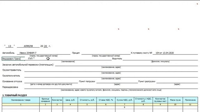 Заполняем ТТН