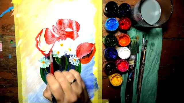 Полевые цветы в вазе - Wildflowers in a Vase - Drawing lessons - Уроки рисования