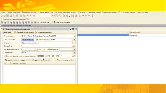Загрузка в 1С:БГУ ред. 1.0 из Кристы платежных поручений