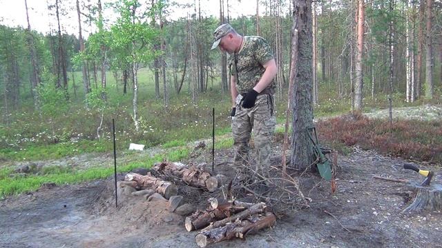 Таежный костер - очаг. Оборудование стоянки.