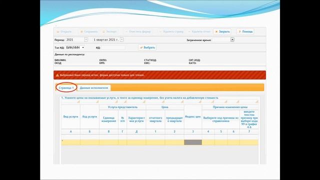 Заполнение статистической формы 1-Ц (услуги) (квартальная)