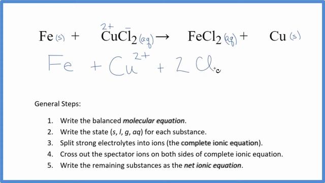 How to Write the Net Ionic Equation for Fe + CuCl2 = FeCl2 + Cu