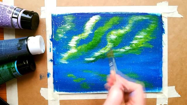 Как нарисовать СЕВЕРНОЕ СИЯНИЕ акрилом | Простой урок рисования красками | Рисунок для начинающих