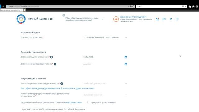 Как подать заявление на патент через личный кабинет ИП