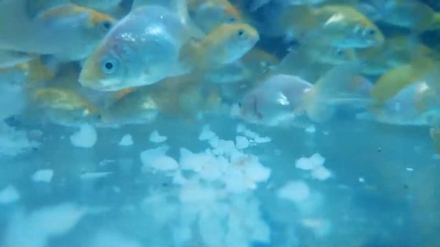 Гречневая каша на завтрак! Кормление малька золотой рыбки. Goldfish.