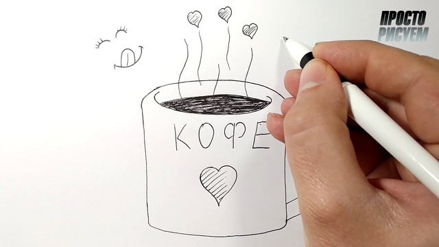 Рисунок ручкой, ЛЮБЛЮ КОФЕ как идея для рисования